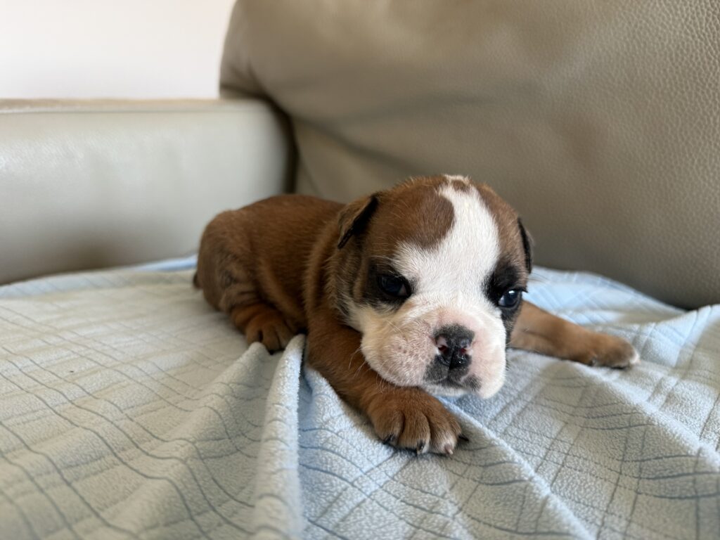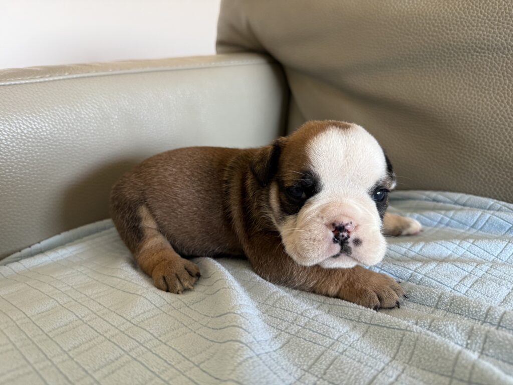 Our Lady Bulldogs: Picture adorable, pint-sized powerhouses with long bodies and big personalities. Our female French and English Bulldogs might be on the smaller side, but don’t let that fool you – they’re the heart and soul of our breeding program. We keep these ladies fit and trim, because healthy mamas mean happy puppies!